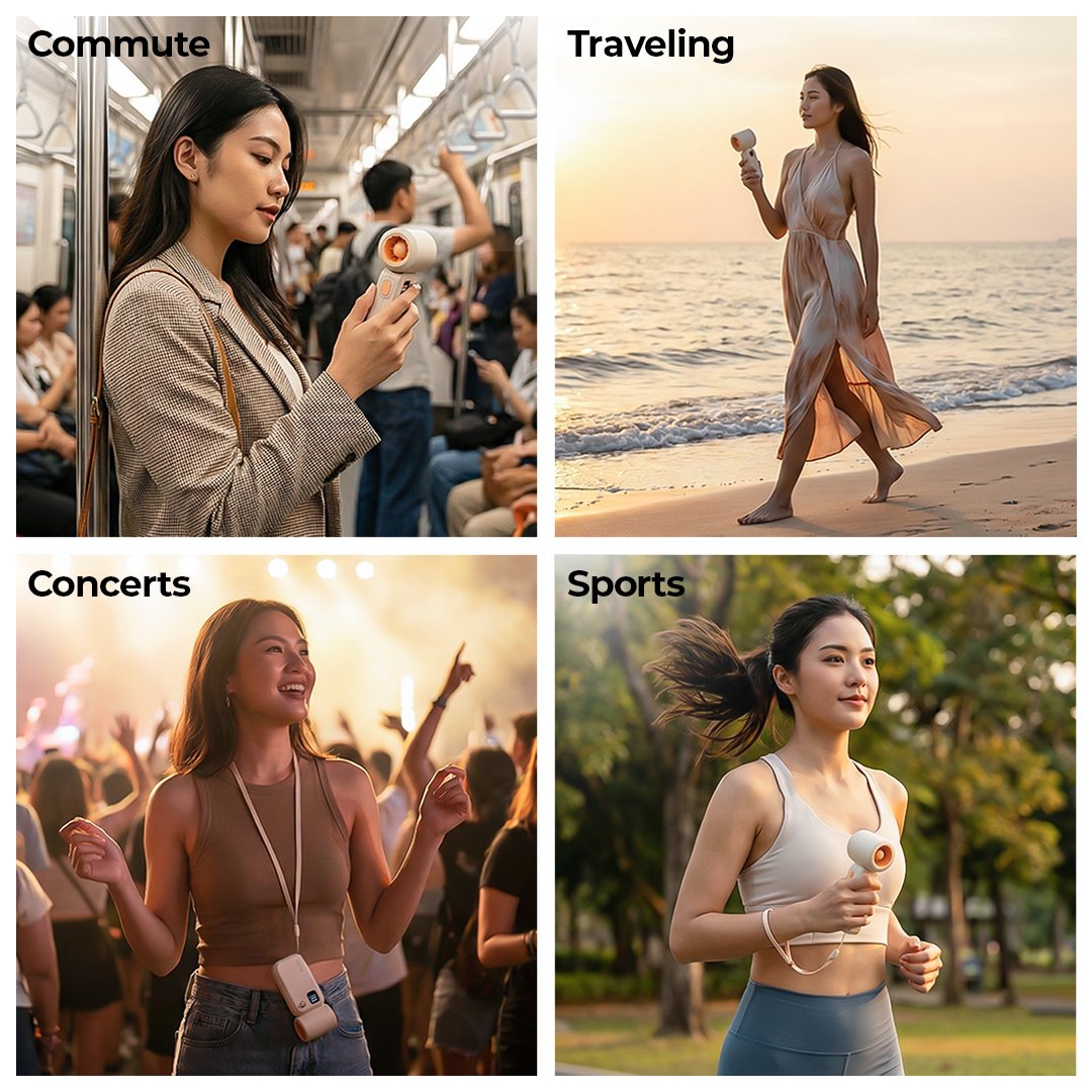 Powered by a Real 23.000RPM high-speed BLDC motor and a 5-blade aerodynamic design, generates dense, focused airflow that feels instantly refreshing without the harsh noise. The compact chassis is optimized for airflow density, ensuring maximum wind output from a minimal form factor.