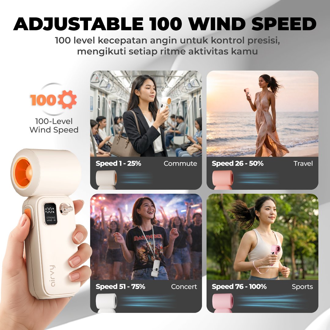 Mini turbo fan dengan strong wind performance dalam balutan retro classic design yang elegan dan compact. Dilengkapi smart lock design untuk keamanan dan kemudahan penggunaan, memastikan kipas tetap stabil saat dibawa. Hembusan angin kuat, fokus, dan konsisten dalam ukuran yang compact, menjadikannya pilihan ideal untuk aktivitas harian.